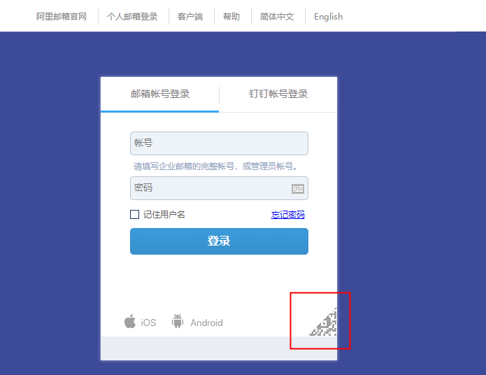 2、访问网页版邮箱时,在登陆框右下角可以点选扫码登录,见下图。二维码有效期为5分钟。
